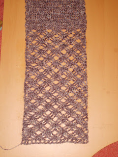WabenschalYarn: Rennie pure wool in purple. I got this off of ebay as part of a test order to see what a shop was like, and this was my test project for the yarn (but don't tell my mum that, cos I gave it to her). It turned out really good, and blocked really well. The difference after blocking was amazing.